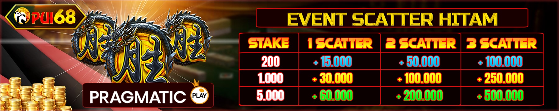 1. Event berlaku untuk semua member di PUI68 yang TIDAK MENGAMBIL PROMO BONUS LAINNYA